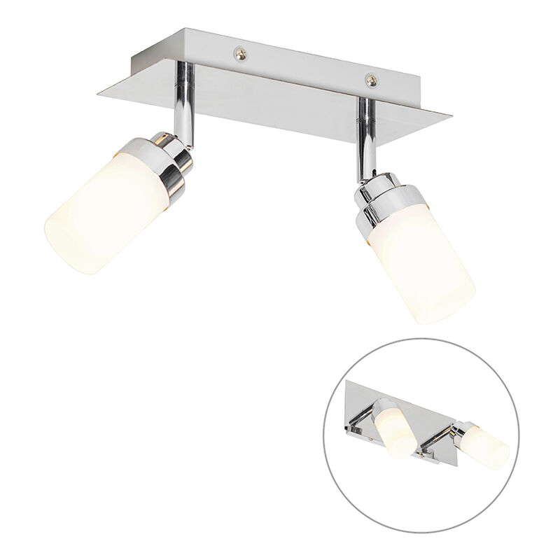 QAZQA Faretto da bagno moderno in acciaio a 2 luci IP44 - Japie Scegli un faretto moderno per il bagno con il nostro Japie. Questo faretto è realizzato in acciaio con vetro bianco. Ha una profondità di 8 cm, un'altezza di 15 cm e una lunghezza di 22 cm. I paralumi hanno un diametro di 4,5 cm e un'altezza di 8 cm. Le lampadine G9 necessarie non sono incluse, quindi non dimenticarti di ordinarle separatamente. Puoi rendere la tua casa ancora più accogliente la sera con un dimmer esterno, poiché questi faretti sono dimmerabili (dimmer non incluso). Il valore IP è 44, il che significa che è a prova di schizzi e quindi adatto ad esempio per il bagno. Porta un faretto elegante nella tua casa con questo Japie. Portalampada: G9 . Max 2 x 33 W, 230 V Adatto a: LED Voltaggio: 220V/230V IP Classe di protezione: IP44 Funzioni extra: Regolabile: Dimmer escluso,No, senza cavo e spina Lampadine exclusiva Il QAZQA Faretto da bagno moderno in acciaio a 2 luci IP44 - Japie è Acciaio. Gli spazi
