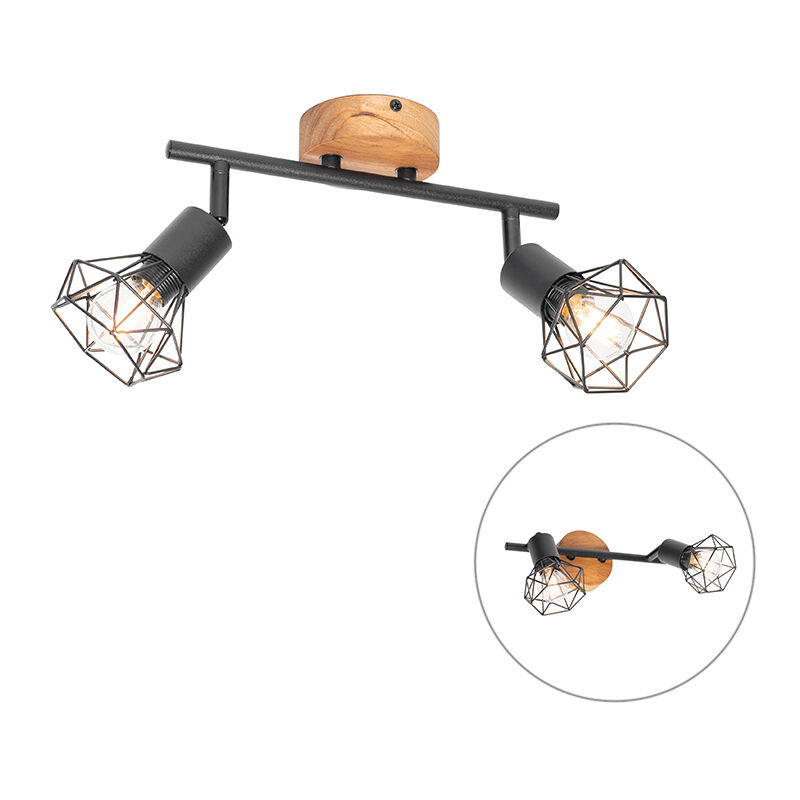 QAZQA Faretto nero con legno girevole e inclinabile 2 luci - Mosh Porta un faretto industriale nella tua casa con il nostro Mosh. Questo faretto è adatto sia per il soffitto che per la parete. Mosh è realizzato in acciaio nero con legno marrone. Ha una profondità di 9,5 cm, un'altezza di 17,5 cm e una lunghezza di 45,5 cm. La piastra di montaggio ha un diametro di 9,5 cm e un'altezza di 3 cm. Le lampadine E14 richieste non sono incluse, quindi non dimenticare di ordinarle separatamente. Rendi la tua casa ancora più accogliente con un dimmer esterno, perché questa lampada è dimmerabile con la giusta lampadina (dimmer non incluso). Ottieni un faretto elegante per i tuoi interni industriali con il nostro Mosh. Portalampada: E14 . Max 2 x 25 W, 230 V Adatto a: LED Voltaggio: 220V/230V IP Classe di protezione: [IP20] A prova di polvere Funzioni extra: Regolabile: Dimmer escluso,No, senza cavo e spina Lampadine exclusiva Il QAZQA Faretto nero con legno girevole e inclinabile 2 luci - Mosh è