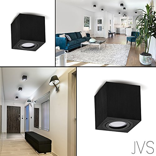 Faretto da superficie JVS apparecchio a plafone da soffitto LED 1W bianco caldo Milano Presa GU10 da 230 V quadrato nero orientabile Faretto a soffitto, lampada a soffitto in alluminio