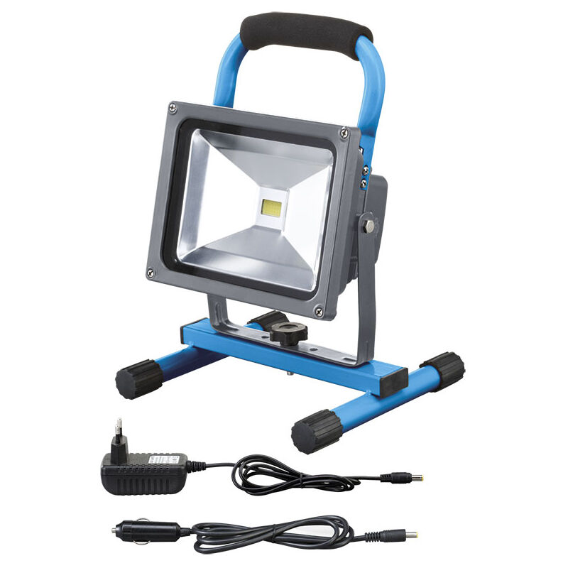FARETTO A LED RICARICABILE 20W 600/1450 lm FERVI 0445/20 CON INTERRUTTORE PER FUNZIONAMENTO A 600 lm, RICARICA AUTO CON SPINA PER ACCENDISIGARI E ALIMENTATORE 230 V DA CASA, ROBUSTO SUPPORTO ORIENTABILE Caratteristiche tecniche: Alimentazione: DC 12 - 24 V, 20 W;
