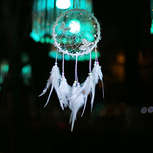 Farfalla Di Piume Bianche Acchiappasogni Decorazione Della Parete Decorazione Della Casa,Acchiappasogni Da Parete Per Ragazze Camera Da Letto Dormitorio Boho Ornamento Artigianale