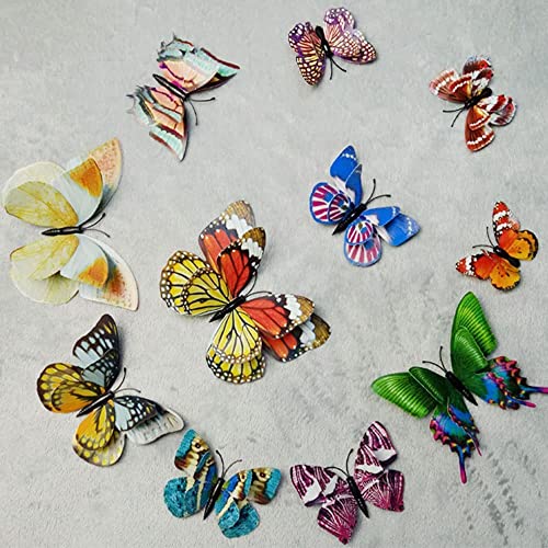Farfalle 3D Adesivi per Paret, 12 Farfalle Doppia Ala e Magnete 3D Luminosa, 3D Luminosa Farfalle Adesivi Murale Arte Adesivo Murali, Magnetici Adesivi Murali per Decorazione di Interni ed Esterni