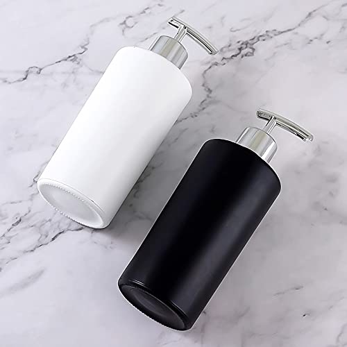 FARI Dispenser, erogatore di sapone liquido da 450 ml, ricaricabile, in vetro, per il lavabo e il lavello della cucina, 2 pezzi, 1 nero e 1 bianco