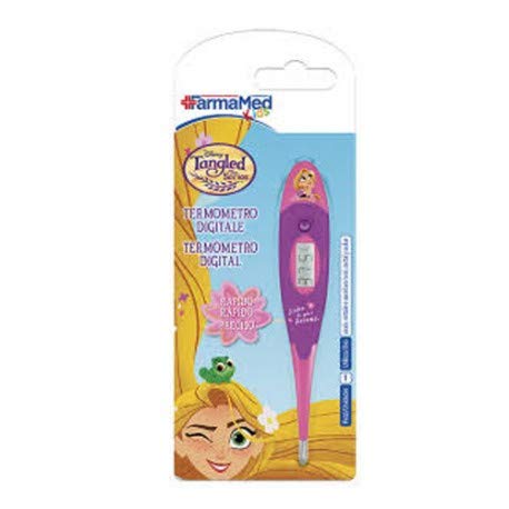 FARMAMED Termometro Digitale Disney Rapunzel per Bambini, Uso Orale, Rettale o Ascellare, Punta Flessibile, Display LCD, Custodia per il trasporto