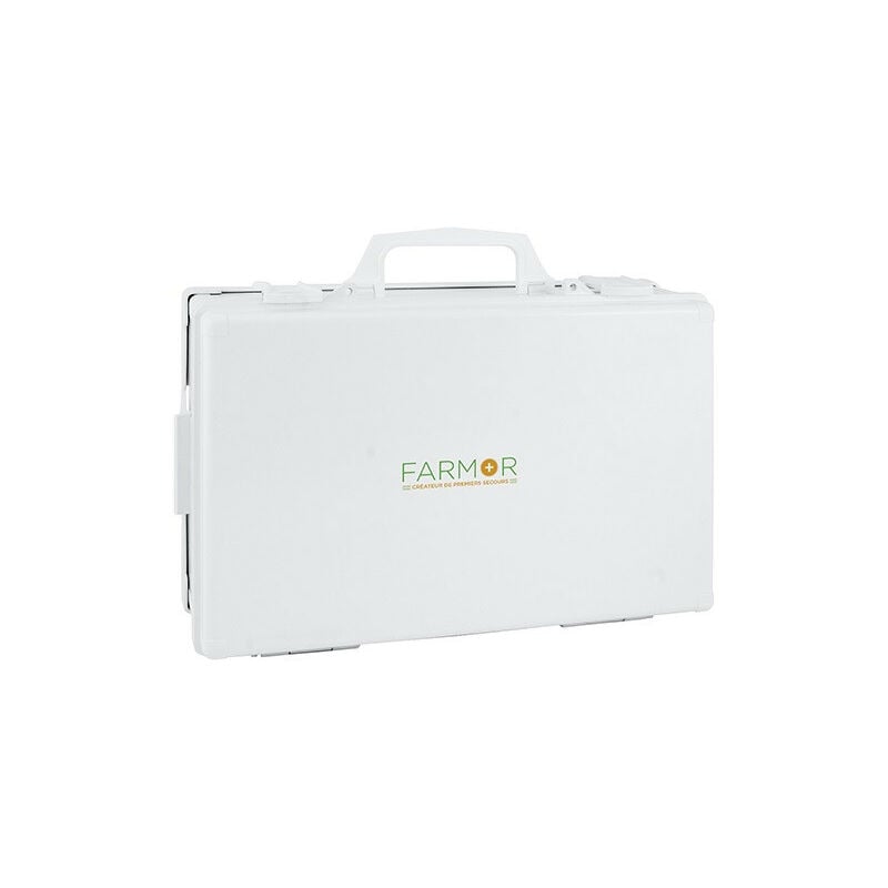 Farmor - Cassetta di pronto soccorso vuota con maniglia di trasporto e supporto a muro 40x26x10 cm - FAR 1051 AV Scatola vuota in ABS bianco Le custodie ABS (acrilonitrile - butadiene - stirene) sono a prova di polvere e umidità, indeformabili e inalterabili. Alcuni sono dotati di scomparti rimovibili per un facile stoccaggio dei prodotti che, protetti da due lembi trasparenti, sono facilmente identificabili. Con supporto a parete e maniglia di trasporto, viti e tasselli, sigillabile Specifiche tecniche: Dimensioni: 40 x 26 x 10 cm