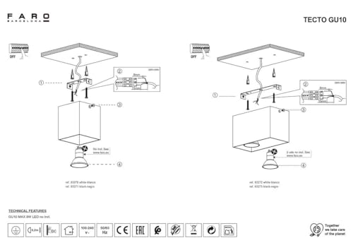 Faro 63271 - TECTO-1 Lampada plafoniera nera GU10