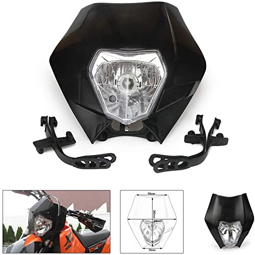 Faro Anteriore Moto,12 V 35 W Testa Della Lampada Carena Moto Alogena Faro Indicatore Paralume Ricambio per Dirt Bike Enduro Supermoto-Nero