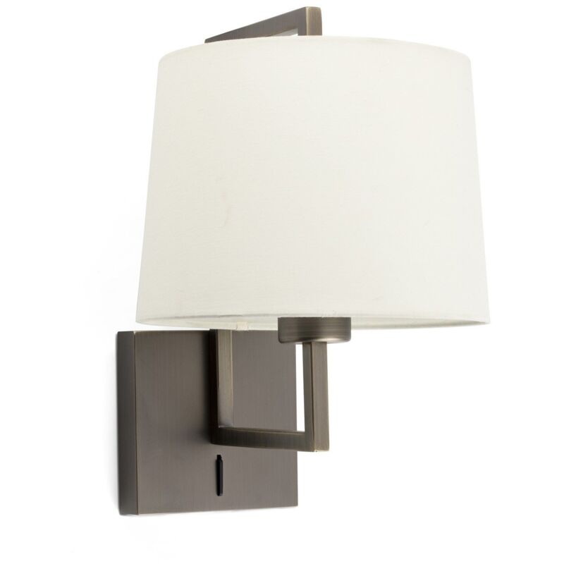 Aplique de pared beige, modelo FRAME diseñado por NAHTRANG para la iluminación interior. Con un interruptor integrado en la base para facilitar su uso, está pensado para el dormitorio. El acabado de la estructura es de oro viejo y el de la pantalla beige.