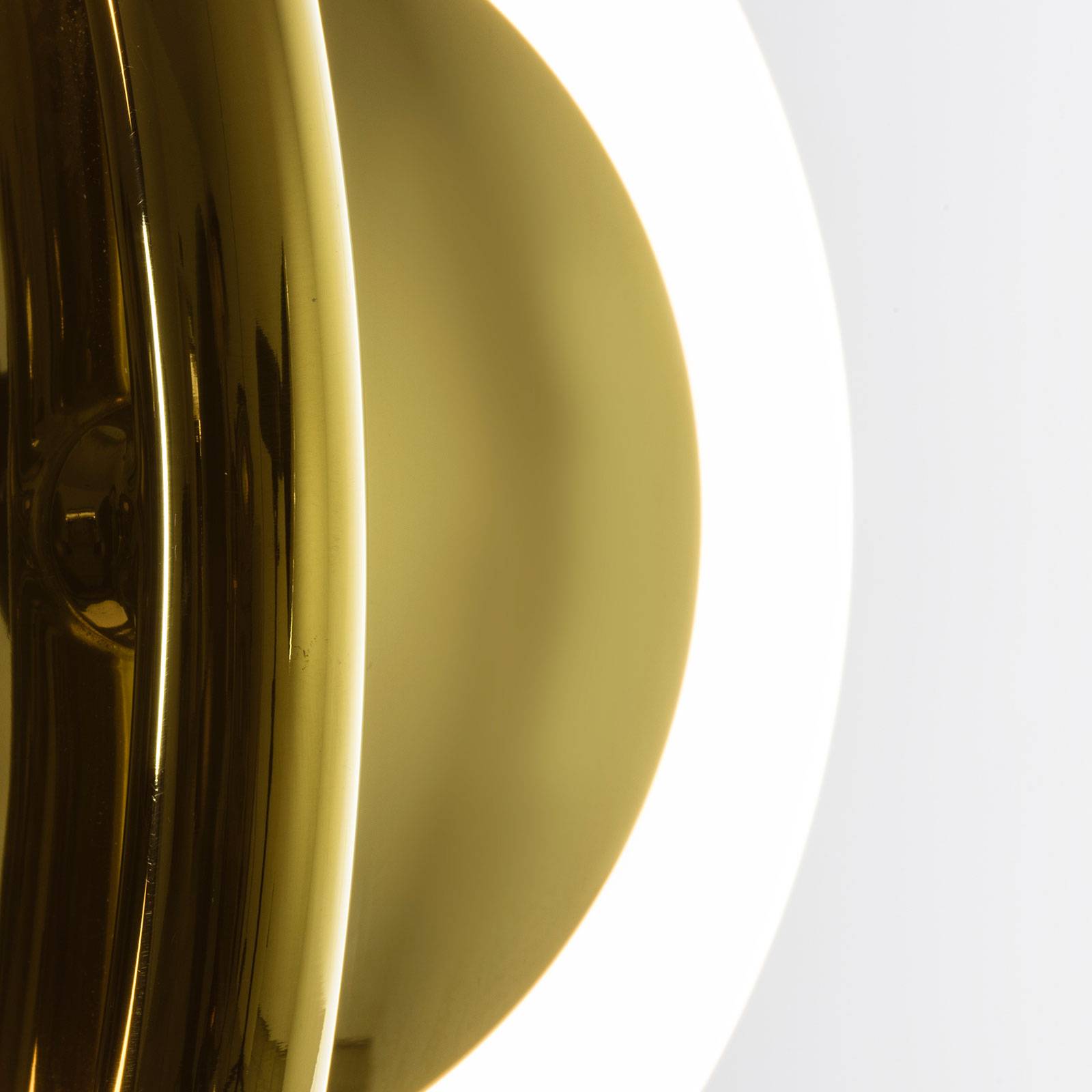 Le Vita - Lampada da tavolo a LED con sfera di vetro opalino La straordinaria lampada da tavolo Le Vita è stata creata dallo studio Nahtrang. Con questa lampada da tavolo, i due product designer Daniel Vila ed Esther Pujol hanno creato un oggetto luminoso moderno e dall'aspetto unico. In ricordo della luna all'orizzonte e della gravità che ci circonda, la palla di luce in vetro opale della lampada da tavolo Le Vita sembra fluttuare, trattenuta solo dalla pregiata cornice in alluminio di colore dorato. I LED all'interno del vetro illuminano delicatamente e uniformemente l'ambiente circostante. Un pratico interruttore on/off sotto forma di funzione touch sulla base completa il pacchetto complessivo di successo.