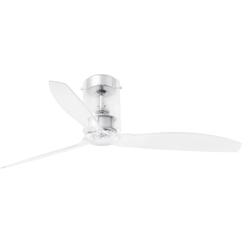 Ventilador de techo modelo MINI TUBE de la marca FARO sin luz. Tiene un motor DC con 6 velocidades: 4-6-9-13-22-32 W / 51-77-103-129-155-185 RPM. Se acciona mediante mando a distancia. El cuerpo es de acero color cromo brillo y transparente, cuenta con 3 palas de PC (POLICARBONATO) de color transparente y tiene un diámetro de 1280 mm. No es compatible con kit de luz. No es compatible con tijas de extensión.Este ventilador dispone de función inversa, también llamada función verano-invierno, que consiste en el accionamiento del ventilador en sentido inverso para optimizar el uso de la calefacción en invierno. Este ventilador no es apto para exterior.