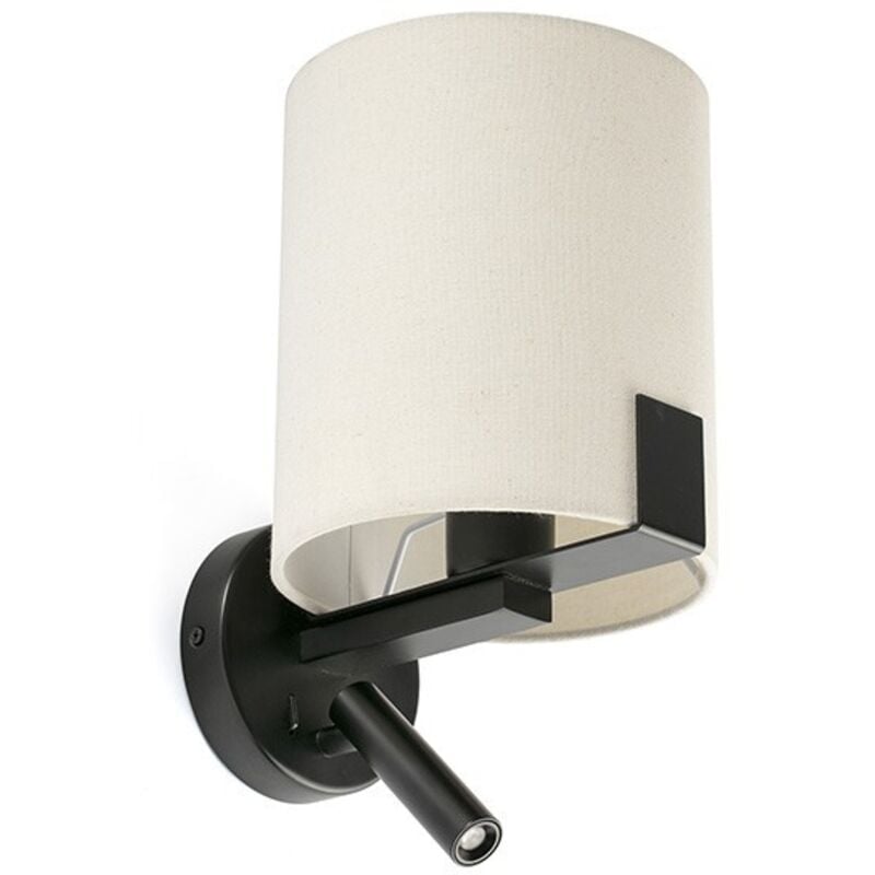 Aplique de pared con lector negro y blanco roto, modelo NILA de FARO Con una pantalla cilíndrica blanco roto y estructura en negro, este aplique de diseño vanguardista realza cualquier espacio. Además, su lector LED incorporado ofrece tanto luz ambiental como de lectura. Modernidad y practicidad en una sola pieza. Necesita una bombilla E27 que no está incluida, se debe adquirir por separado Recomendamos la bombilla ref.17463.