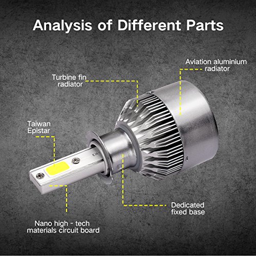 H3 Faro Bulbi Auto LED Luci, PUSHIDUN 6000K Super Luminosa Lampada con COB Chip per Auto veicolo Faro Della Luce Delle Lampadine dell'automobile Kit Lampadine fari LED