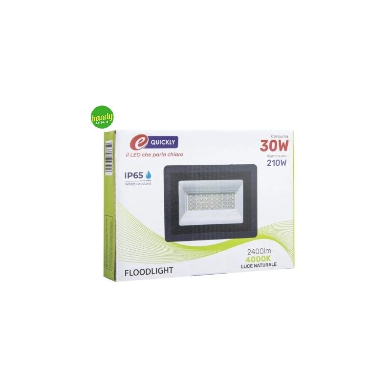 Faretto LED, prodotto dal brand E-Quickly, ultrasottile ed a risparmio energetico. Dotato di sensore di movimento, potenza di 20W luce naturale 4000K, con angolo di fascio ampio 120°, che illumina le aree più ampie con una luce più brillante. Alloggiamento in alluminio pressofuso con vetro temprato, scocca predisposta ad un'eccellente dissipazione del calore e con elevataresistenza ad urti e corrosione di vario tipo grazie ad una lavagna in vetro infrangibile. Grado di protezione IP65, ciò significa che è resistente all'acqua e polvere grazie ad un anello in silicone sigillato incorporato.
