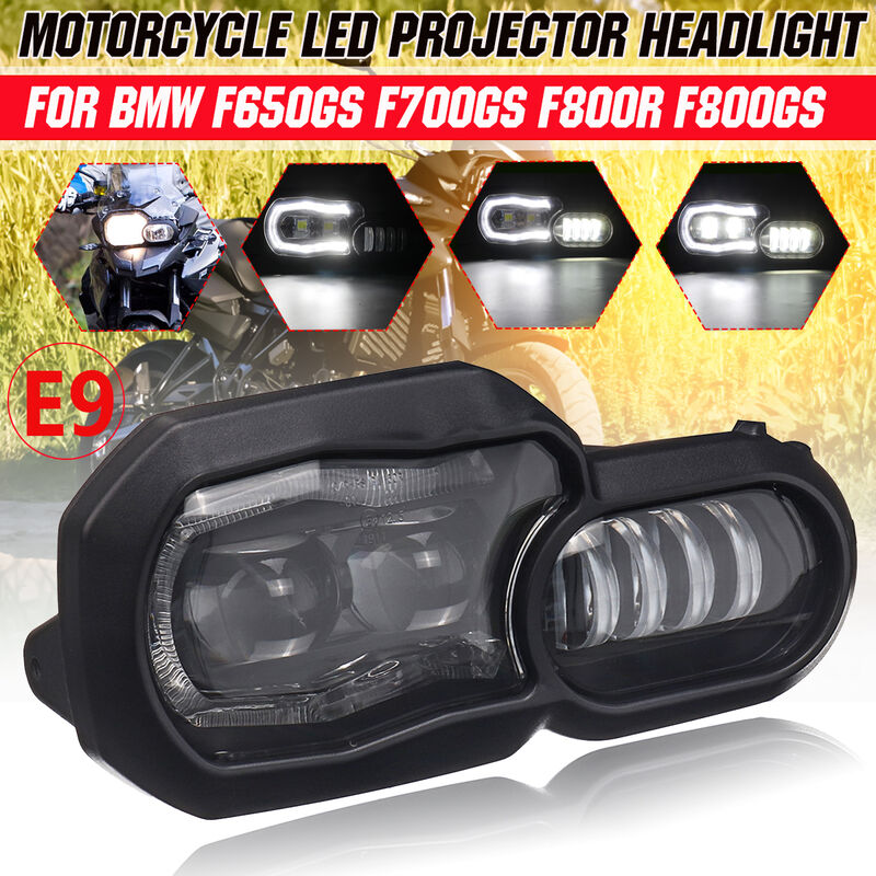 Faro LED moto per BMW F650GS F700GS F800R F800GS AdventureSpecifica: Condizione: 100% nuovo di zeccaNumero modello: H64908Nome prodotto: faro proiettore LED moto Approvazione: E9Materiale: alluminio pressofuso + lente con rivestimento duroColore scocca: neroColore luce LED: biancoDimensioni: 29 cm/11.41quot;