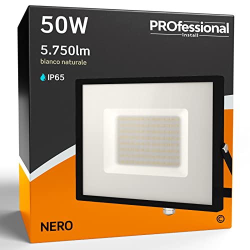 Faro LED Faretto Esterno impermeabile IP65 50W Professionale Nero 5750 lumen - Luce Bianco Naturale 4000K - Fascio Luminoso 100° Eurocali