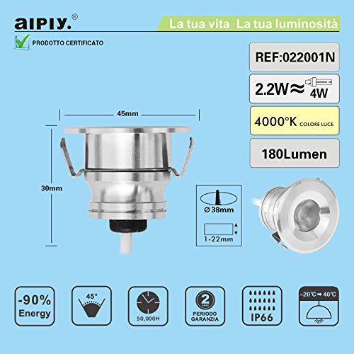 Faro faretto incasso tondo 2.2 w led da esterno o interno segnapasso calpestabile ip20 luce naturale 4000k