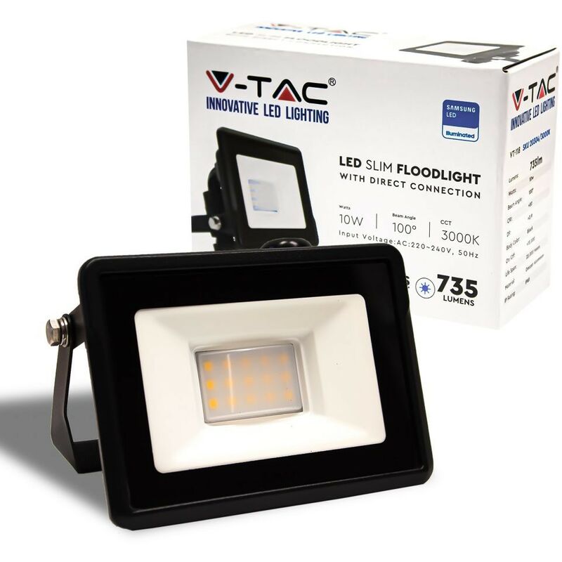 V-TAC VT-118 FARO LED 10W SMD IP65 CHIP SAMSUNG COLORE NERO V-Tac VT-118 è un faro LED da 10W di potenza con tecnologia LED Samsung SMD, corpo in alluminio di colore nero e copertura satinata. Con fascio luminoso di 100° e flusso luminoso di 735 lm, questo faro ha un rapporto di 73 lm/W. Inoltre, ha un grado di protezione IP65 che lo rende adatto ad un uso esterno anche sotto la pioggia prolungata. È predisposto per il fissaggio a parete, ed il collegamento alla rete elettrica avviene tramite morsetti a vite direttamente all'interno della pratica scatola di derivazione impermeabile incorporata. SPECIFICHE TECNICHE • Potenza: 10W • Tensione: AC 220-240V 50Hz • Fascio luminoso: 100° • Flusso luminoso: 735 lm • Efficienza luminosa: 73 lm/W • Materiale: alluminio • Colore: nero • Copertura: satinata • Grado di protezione: IP65 • Dimensioni: 133 x 88 x 55 mm • Durata: 25.000 ore • Garanzia: 5 anni VARIANTI DISPONIBILI • Temperatura colore: 3000K (Bianca Calda) - SKU 20304 • Temperatura