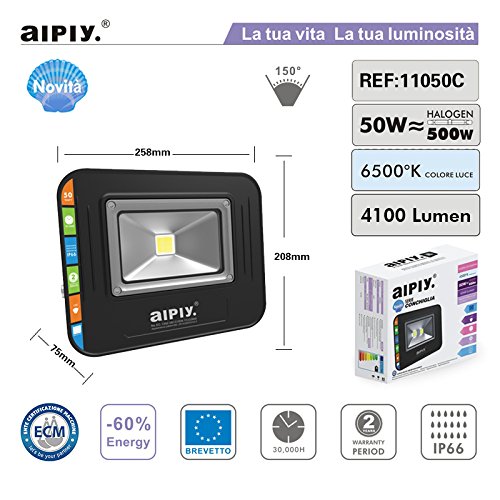 FARO LED IP65 FARETTO LUCE FREDDA FARI DA ESTERNO 50W RESA 500W ALTA LUMINOSITA