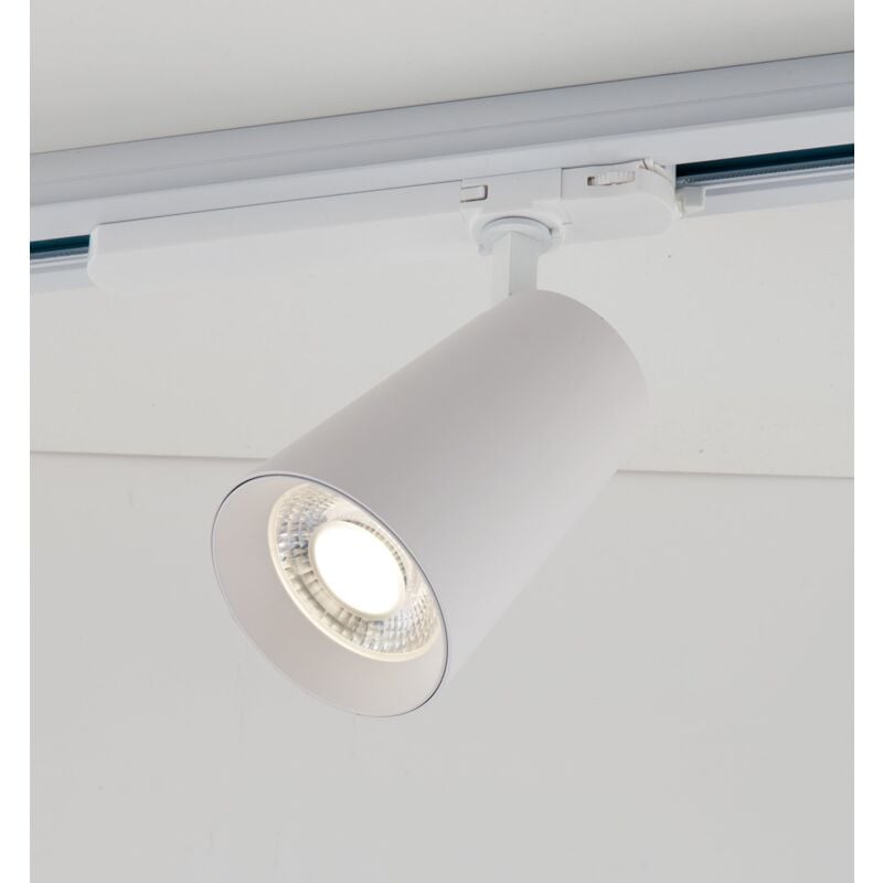 Proiettore a binario in alluminio pressofuso con adattatore trifase in bianco o nero matto. Colore: Bianco Materiale: Alluminio Tipo sorgente o lampadina richiesta: LED Watt: 42 Lumen: 4230 Lumen Kelvin: 3000 CCT: No Dimmerabile: No Smart function: No Grado di protezione da corpi solidi e acqua: IP20 (solo uso interno) Altre informazioni: ;