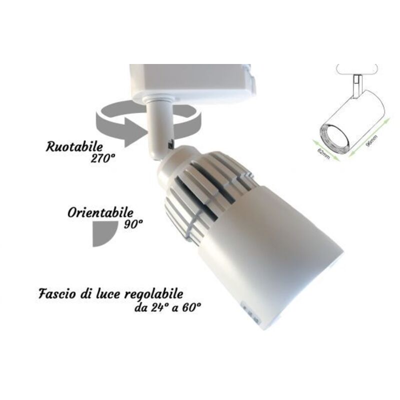 1 Faro Lampada Led Da Binario 220V 10W Angolo Luce Regolabile Da 24° a 60° 10W 1000 Lumen Bianco Neutro 4000K Colore Corpo Faretto Bianco Ideale Per Illuminazione Negozio Ristorante Home Ect. Marca LEDLUX Codice Prodotto CB1703N Colore Carcassa Bianco Tipo Attacco Da Binario Dimmerabile NO Voltaggio AC220-240V 50/60Hz Potenza 10W Luminosità Circa 1000 Lumen Totale,equale a 100W di lampada ad incandenscenza CRI RA>80 Angolo Luce Regolabile Da 24° a 60° Numero di Led 1 cob da 10W Colore Bianco Neutro Circa 4000K Impermeabilità IP40 Temperatura Emesso < 50°C Misura(mm) Diametro 62xH96 Peso Circa 450g Durata > 30000 ore Omologazione SI, CE e RoHS