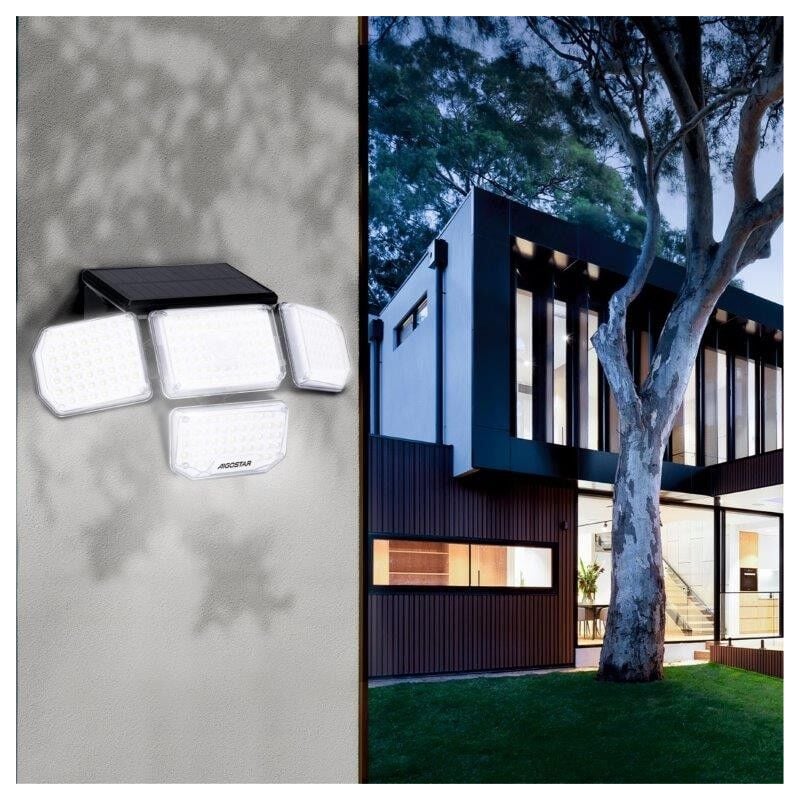 Faro applique solare a parete 360° ip65 tutte le luci ad angolo: le luci di sicurezza solari sono illuminate a 360° a tutti gli angoli, la testa della lampada può essere ruotata a qualsiasi angolazione, le nostre luci di sicurezza solari possono illuminare ogni angolo del vostro cortile, in particolare la posizione sotto il corpo della lampada. luci di sicurezza solari super luminose: 430 led super luminosi e il design di 4 teste regolabili forniscono un'illuminazione ultra luminosa da 6500 k, rendendo il tuo giardino luminoso come il giorno. super capacità della batteria 1200 mah, durata della batteria ultra lunga, completamente carica per illuminare tutta la notte. impermeabile ip65, anche nei giorni di pioggia, può illuminare il giardino, cortile, garage, scale, porte d'ingresso, cortili, campi da basket. 3 modalità di illuminazione solare di sicurezza: 1. modalità di sicurezza (il sensore di movimento accende la luce quando le persone arrivano);