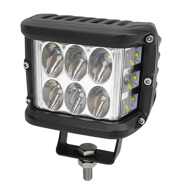 Faro da lavoro a LED con potenza di 36 W. Questo modello, rettangolare dalle dimensioni di 99x79x75 mm, proietta in uscita un flusso di luce combo: ad ampio e lungo raggio. Dispone di un corpo in alluminio, di una lente realizzata in PMMA, di 12 LED di tipo CREE, di una staffa per il fissaggio in acciaio inossidabile e un cavo di alimentazione lungo 40 cm. Il proiettore è coperto da un grado di protezione IP67 ed è certificato CISPR25 classe 2. Caratterizzato da una tensione nominale di 10-36 V, da una temperatura colore di 6000-6500 K, da una temperatura d'esercizio da -40°C a +60°C, da un assorbimento di corrente di 1,78 A a 12 V e di 0,85 A a 24 V ed è provvisto di 2800 lumen (LM). Si tratta di uno strumento fondamentale in quanto fornisce l' illuminazione necessaria per lavorare in ambienti poco illuminati o bui. Inoltre garantisce maggiore sicurezza, riducendo il rischio di incidenti, andando ad individuare ostacoli o pericoli presenti nell'ambiente. Alimentazione Assorbimento