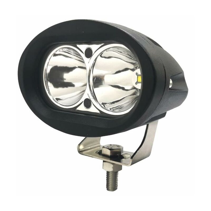 Faro da lavoro a LED con potenza di 20 W. Questo modello, rotondo dalle dimensioni di 98x75x76,5 mm, proietta in uscita un flusso di luce fredda a lungo e profondo raggio. Dispone di un corpo in alluminio, di una lente realizzata in PMMA, di 2 LED di tipo CREE, di una staffa per il fissaggio in acciaio inossidabile e un cavo di alimentazione lungo 40 cm. Il proiettore è coperto da un grado di protezione IP67 ed è certificato CE, RoHS, R10 e CISPR25 classe 2. Caratterizzato da una tensione nominale di 10-36 V, da una temperatura colore di 6000-6500 K, da una temperatura d'esercizio da -40°C a +60°C ed è provvisto di 850 lumen (LM). Si tratta di uno strumento fondamentale in quanto fornisce l' illuminazione necessaria per lavorare in ambienti poco illuminati o bui. Inoltre garantisce maggiore sicurezza, riducendo il rischio di incidenti, andando ad individuare ostacoli o pericoli presenti nell'ambiente. Alimentazione Assorbimento di corrente: 0, 6A a 12V;