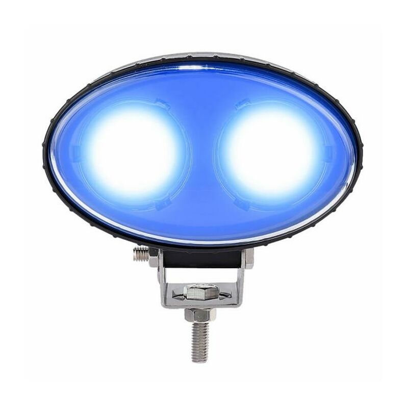Faro da lavoro a LED a luce blu con potenza di 10 W per carrelli elevatori. Questo modello, ovale dalle dimensioni di 140x67x115 mm, proietta in uscita un flusso di luce a lungo raggio. Dispone di un corpo in alluminio, una lente trasparente realizzata in PMMA, 2 LED di tipo CREE, una staffa di fissaggio in acciaio inossidabile e un cavo di alimentazione lungo 40 cm. Il proiettore è coperto da un grado di protezione IP67 ed è certificato CE e RoHS. Caratterizzato da una tensione nominale di 10-110 V, da una temperatura colore di 6000-6500 K, da una temperatura d'esercizio da -40°C a +60°C ed è provvisto di 500 lumen (LM). Si tratta di uno strumento fondamentale in quanto fornisce l' illuminazione necessaria per lavorare in ambienti poco illuminati o bui. Inoltre garantisce maggiore sicurezza, riducendo il rischio di incidenti, andando ad individuare ostacoli o pericoli presenti nell'ambiente. Alimentazione Assorbimento di corrente: 0, 619 a 12V: 0, 321A a 24V;