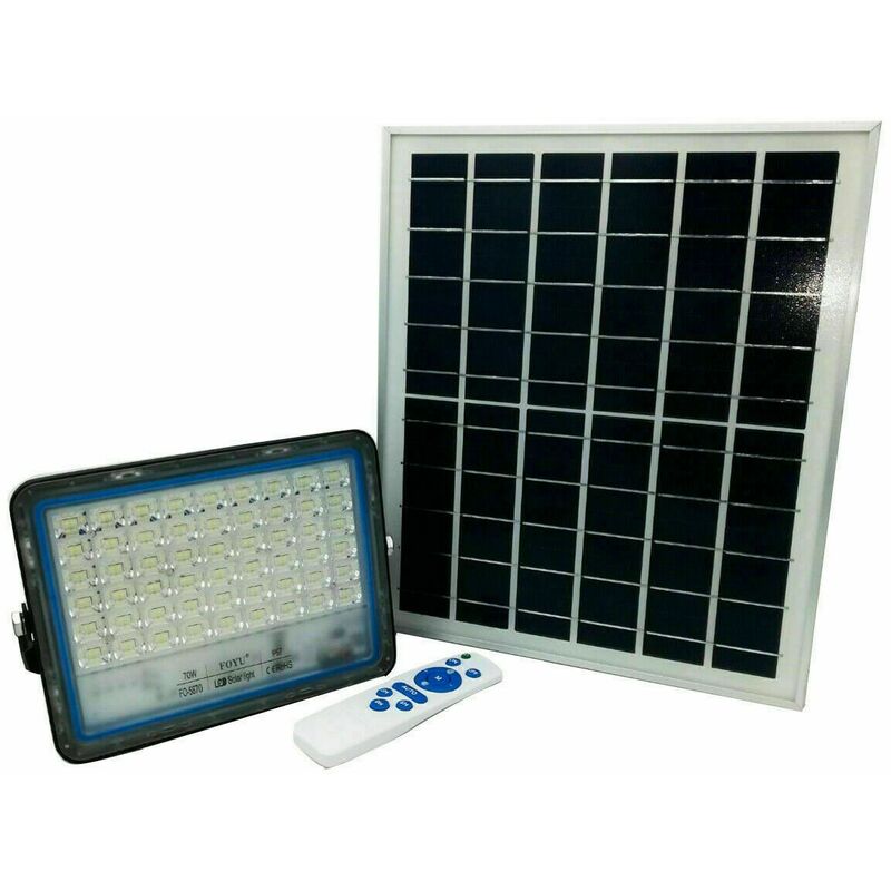 Faretto Led per esterno IP66/67 con pannello solare abbinato completo di staffa e telecomando e cavo, con sensore crepuscolare integrato per l'accensione automatica al calare della luce e pannello solare. dimmerabile tramite telecomando controllo di carica sul faro Faretto Led Da 70w 120w 200w 300w per esterno IP66/ 67 con pannello solare abbinato completo di staffa e telecomando e cavo, con sensore crepuscolare integrato per l'accensione automatica al calare della luce e pannello solare. Il cavo di collegamento tra il faretto ed il pannello è lungo 5 metri circa per consentirti di installare il pannello nella migliore posizione per poter catturare la luce solare. Inoltre è dotato di telecomando nel caso si voglia comandare manualmente lo spegnimento e l'accensione del faretto. Il faretto è facilmente fissabile alla parete grazie alla staffa di fissaggio. Il pannello solare dev'essere necessariamente posizionato al sole mentre il faretto può essere posizionato anche all'ombra o in