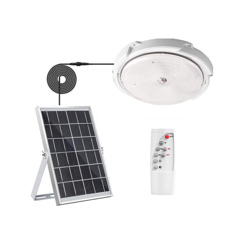 Plafoniera solare da esterno e interno dotata di pannello solare posside ricarica rapida, batteria al litio di grande capacità (può alimentare la plafoniera per un massimo di 6-10 ore). La lunghezza del cavo impermeabile è di 5 metri quindi può essere utilizzato all'interno e all'esterno, allo stesso tempo, puoi scegliere di installarlo a soffitto o a parete. Può essere utilizzato come plafoniera, applique. Ti permette di risparmiare energia e proteggere l'ambiente. La plafoniera solare e il pannello sono realizzati in materiale ABS e alluminio ad alta resistenza con un grado di impermeabilità IP65, in grado di resistere a pioggia, vento, neve, ghiaccio e condizioni di bagnato. Design sigillato adatto per l'uso in qualsiasi ambiente, come soggiorno, camera da letto, cucina, giardino, balcone, patio, garage, campeggio, scale, fienile, rimessa, cantina e altri spazi. Per non farti mancare nulla abbiamo inserito in ogni confezione un prezioso telecomando in grado di darti la possibilità