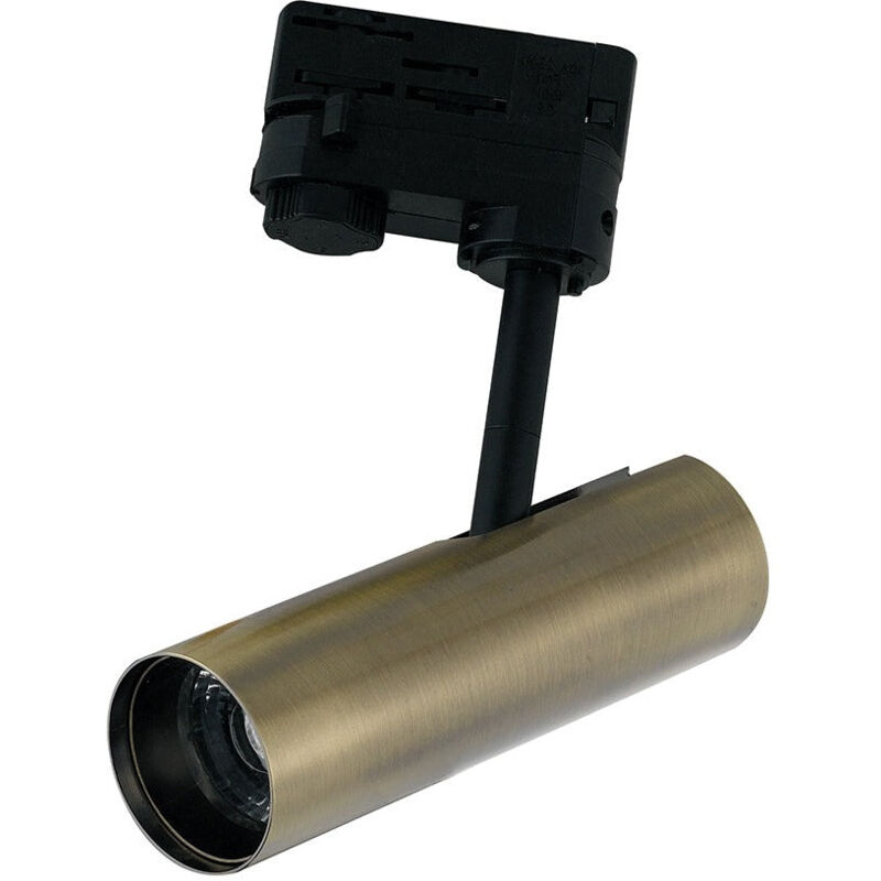 Proiettore a binario con luce spot in alluminio pressofuso con adattatore trifase. Colore: Bronzo Materiale: Alluminio Tipo sorgente o lampadina richiesta: LED Watt: 7 Lumen: 500 Lumen Kelvin: 4000 Grado di protezione da corpi solidi e acqua: IP20 (solo uso interno) Altre informazioni: ;