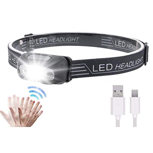 Faro con sensore a LED, lampada da testa, torcia ricaricabile da 500 lumen, faro XPG2, per corsa, ciclismo, pesca, campeggio, escursionismo e bambini, con cavo di ricarica USB, impermeabile, leggero