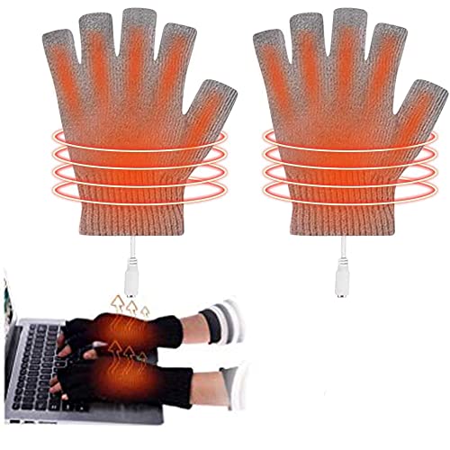 FARONG Guanti Riscaldati USB Donna Uomo Guanti Senza Dita Mezzo Invernali Guanti Invernali Bambini per Riscaldamento Guanti Caldi per Interni O Esterni (Grigio)
