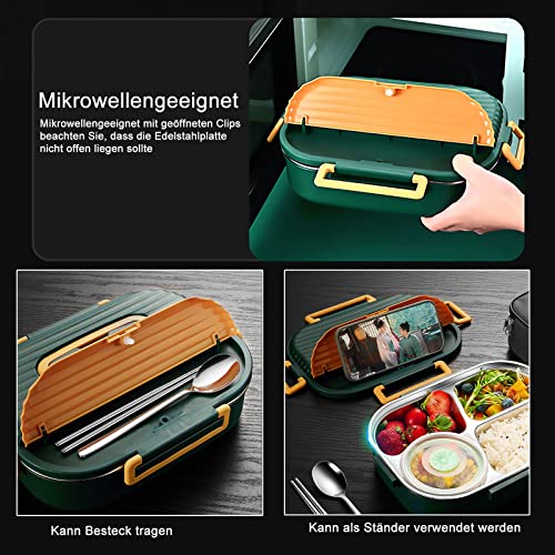 Farsky Lunch Box Set,Contenitore Cibo Con 3 Scomparti ermetici, 1500 ml Bento Box e Posate in Acciaio Inossidabile per Adulti e Bambini per Scuola Lavoro Ufficio,Verde