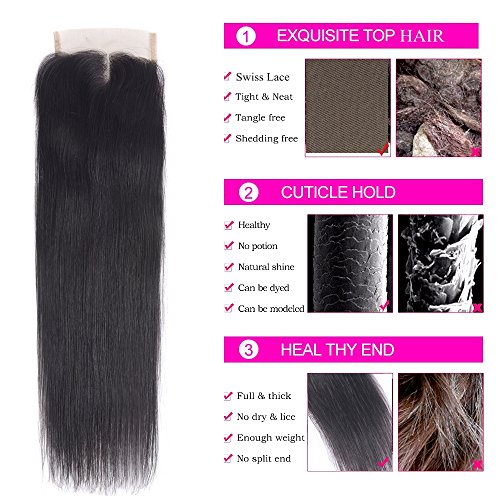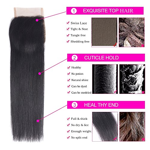 100% unprocessed Brazilian Virgin Human Hair chiusura a laccio 10,2 x 10,2 cm, naturale e sano, nessun groviglio, nessun spargimento, nessun odore.