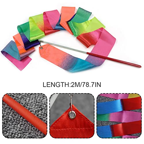 3 fasce arcobaleno per ginnastica e ginnastica, con asta, arcobaleno, fascia da ginnastica per bambini, ballo artistico, Baton, allenamento a spirale
