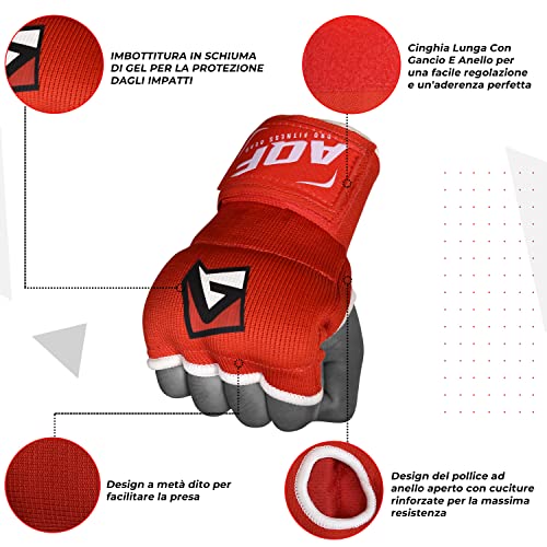 Design: AQF guantoni boxe benda elastica sono fatti di cotone poliestere traspirante texture con aero gel palmo imbottitura 4 dita, ridurre l'umidità guanto da boxe e odore più fornire una presa salda per la migliore esperienza di boxe.