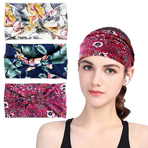 3 Fasce per Capelli Donna, Larga Elastici Boho Stile, Moda Stampa Floreale Accessori Per Yoga Lavoro Quotidiano (B)