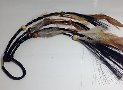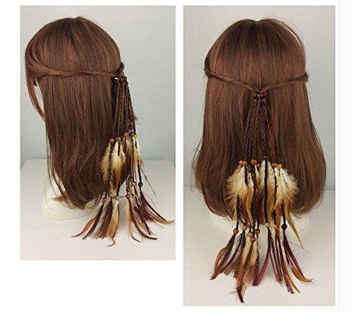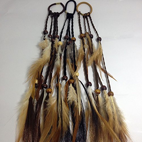 Set di 3 fasce per capelli fatte a mano, stile boho, hippie, elastici per capelli con piume, per capelli e coda di cavallo, accessori per capelli, per donne e ragazze (marrone)