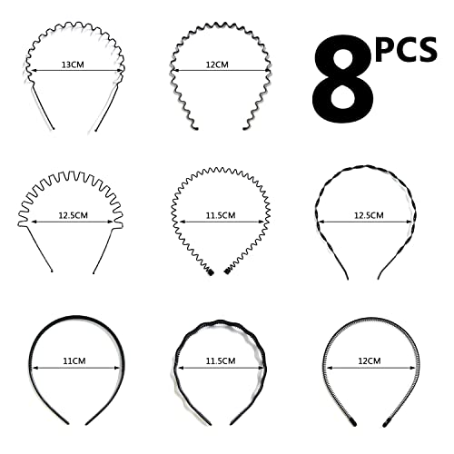 8 fasce per capelli in metallo nero e plastica, universali per uomini e donne, semplici ed elastiche, per il lavaggio del viso, sport, lavoro, bagno e cura del viso.