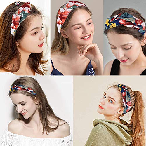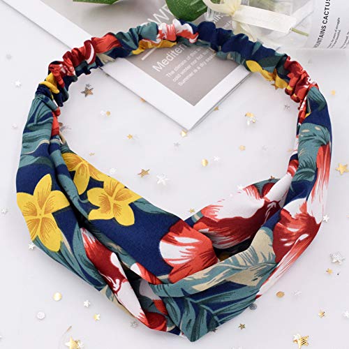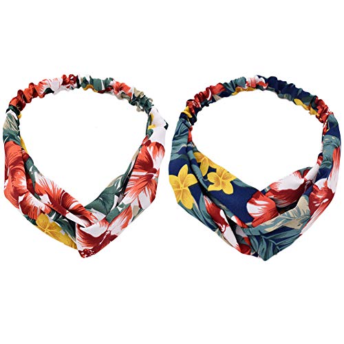 Fasce per Capelli 2 Pezzi da Donna, Fasce Elastiche Vintage con Nodo Incrociato Stampato Floreale Boho, Boemia Incrociata, Fascia per Capelli Larga, Fasce per Capelli Yoga Elastiche