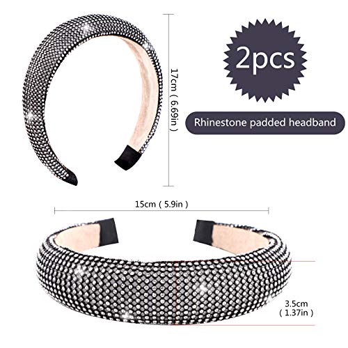 Fasce per capelli con strass e glitter, fascia imbottita con strass e perline di cristallo, per donne e ragazze, accessori per capelli per feste e matrimoni, 2 pz., nero, oro