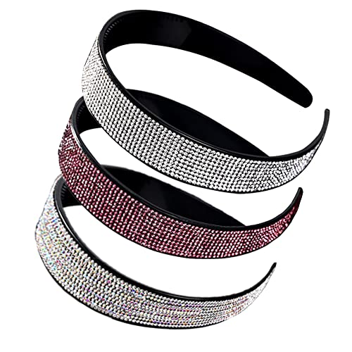 Fasce per Capelli Strass, 3 Pezzi Moda Capelli Antiscivolo Fascia, Cristallo Cerchietto, Accessori per Capelli Cerchietti, per Donna, Bambina, Donna, Uomo, Accessori (Bianco, Colore, Viola)