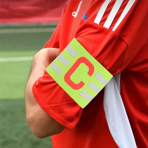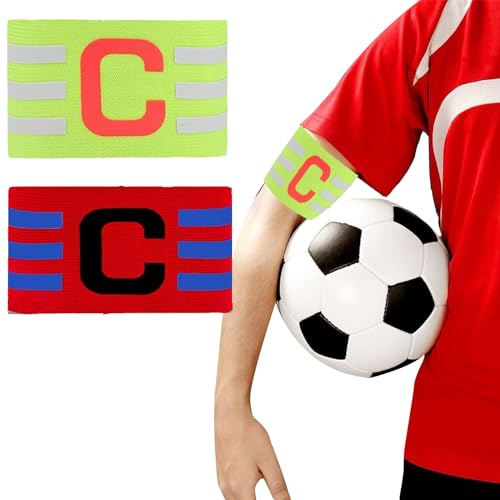 Fasce da Capitano, Fascia da Braccio Capitan Football, Colore Elastico 2 Pezzi Fascia da Capitano per Senior Junior Calcio Sport Capitano Fascia per Adulti Giovani Calcio, Verde Fluorescente, Rosso
