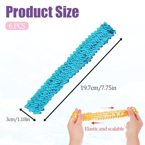 6 fasce elastiche per capelli con paillette, con brillantini, regolabili, per donne e ragazze