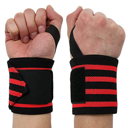 Fasce da polso di sollevamento,cinghie da polso da palestra,fasce da polso Powerlifting,unisex,forniscono supporto e protezione da lesioni,adatte per sollevamento pesi,allenamento,fitness (Nero/Rosso)