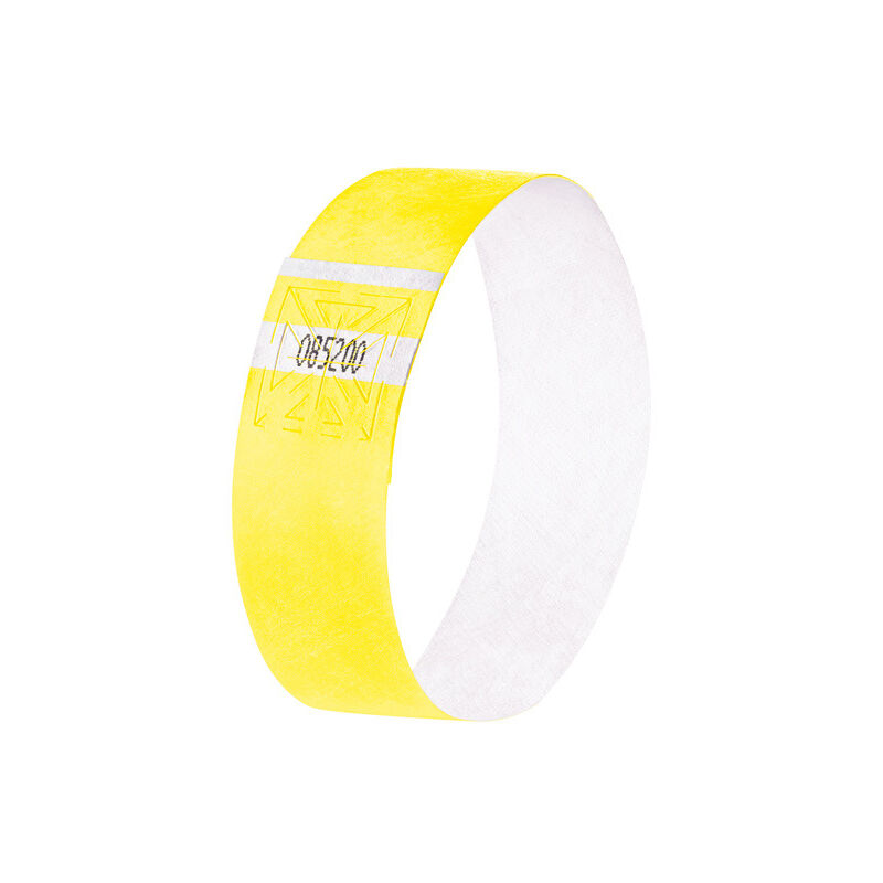 Braccialetti per eventi Super Soft nel colore giallo fluorescente, realizzati in materiale molto morbido che si illumina alla luce nera. La chiusura non può essere manipolata. I cinturini sono resistenti all'acqua e delicati sulla pelle. Può essere utilizzato per il controllo discreto degli accessi ad ogni tipo di evento, come concerti, anniversari aziendali e gruppi privati. La fornitura comprende 120 braccialetti e etichette aggiuntive per etichettare i cinturini con logo, nome, data, messaggi pubblicitari, ecc.