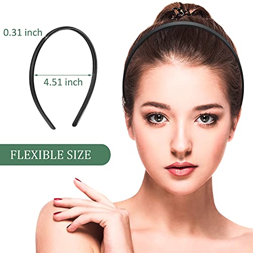 3 fasce sottili in plastica con denti morbidi per capelli fai da te in tinta unita, fasce sottili per capelli per donne, uomini e ragazze (modello nero solido)