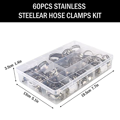 Set di Fascette Atringitubo 60 Pezzi Fascette Stringitubo in Acciaio Inox Fascette per Tubi Regolabili,Adatto per Irrigazione Giardino, Tubazioni Acqua
