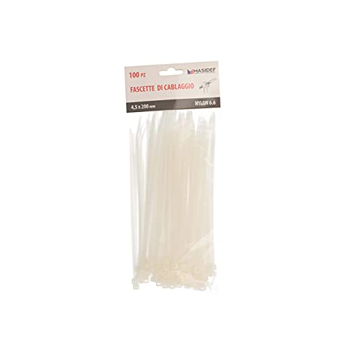 Fascette Cablaggio in Nylon 6.6, Misura 4.5 x 200 mm, Colore Neutro-Trasparente, Confezione 100 pezzi